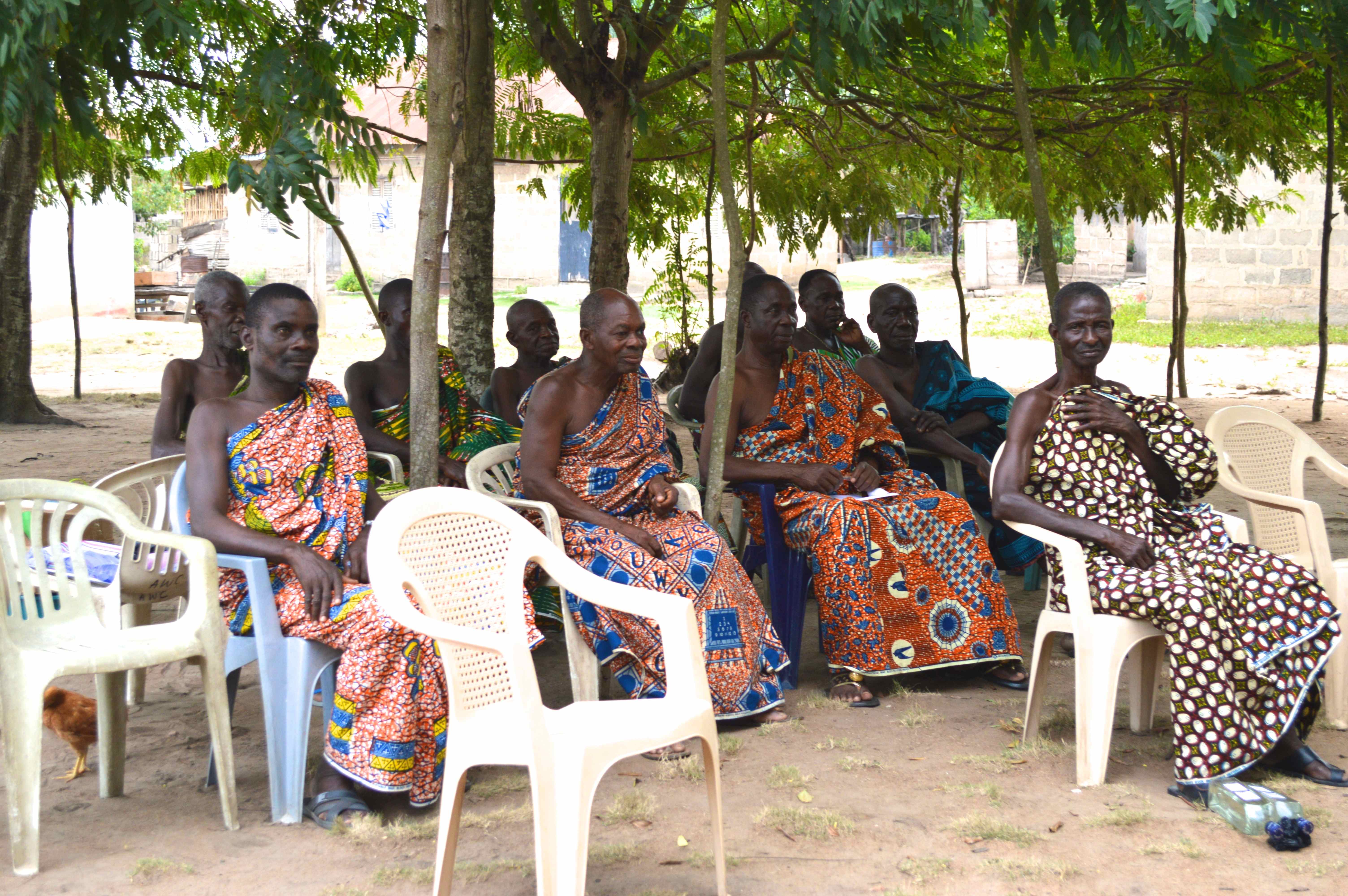 Vandaar ry ons na ‘n ander ‘village’ waar ons hartlik deur ‘n bondel van vyf hoofmanne van ander nabygeleรซ ‘villages’ ontmoet. ย Almal sit onder die bome – koue waterbotteltjie in die hand. ย Eenkant ‘n klomp hoofmanne en oudstes van die stofdorpies…annerkant, ons bleek klomp expats vir mekaar en bekyk.