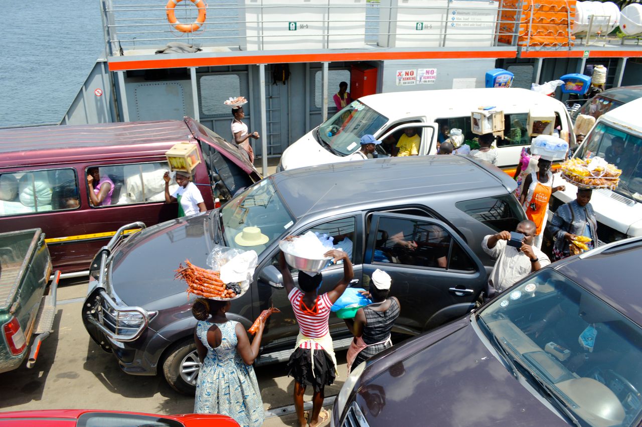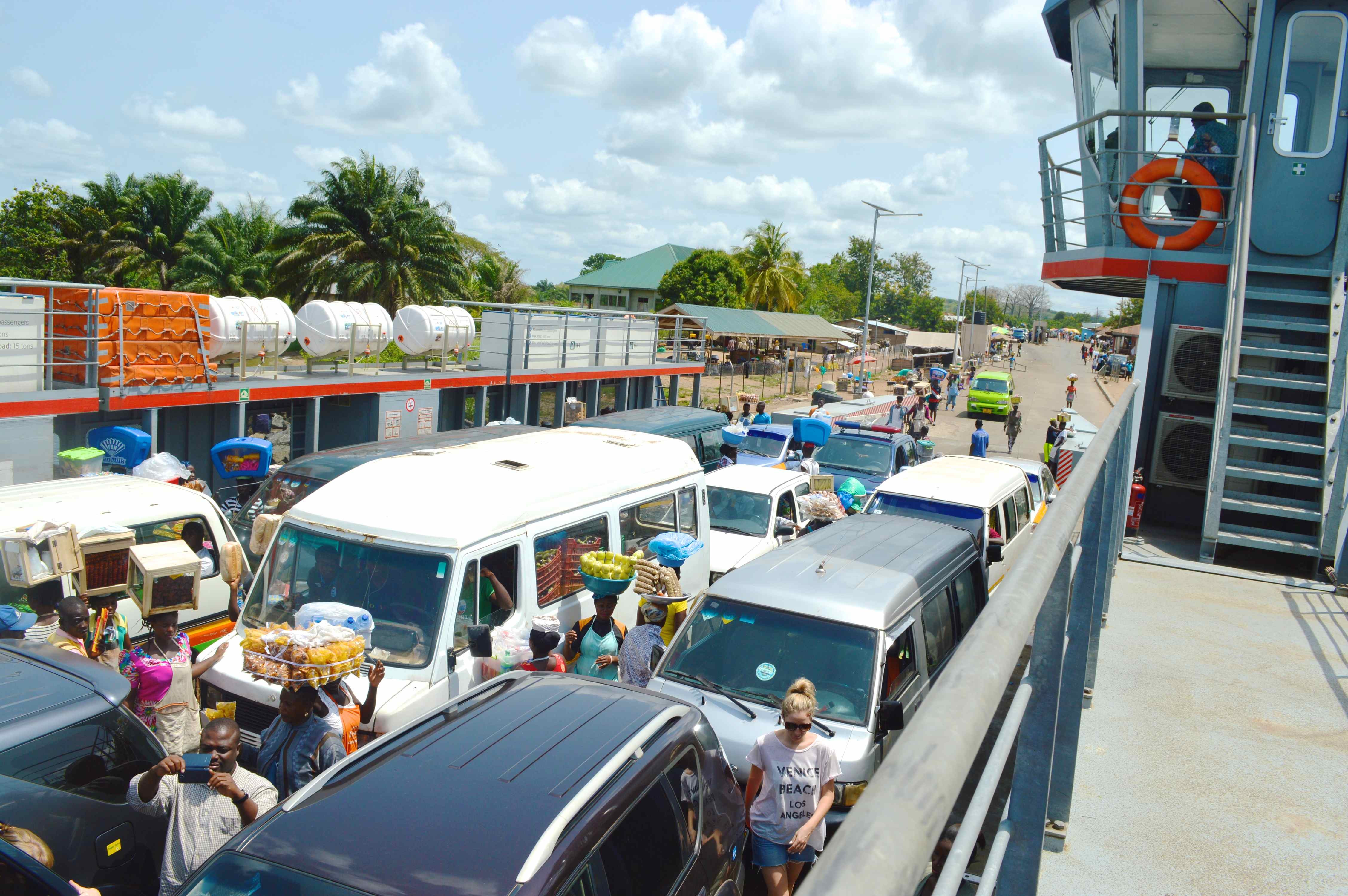 Net oor ‘n uur se ry moet ons van ‘n pont gebruikmaak om die Volta rivier te kruis.
